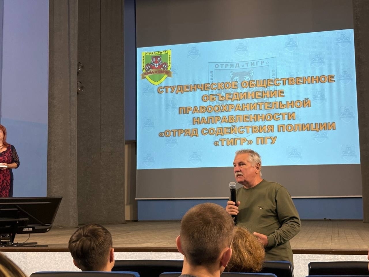 Студенты первого курса посетили организационное собрание «Отряда содействия полиции «Тигр», где им подробно рассказали об основных направлениях деятельности отряда и ознакомили с перечнем предусмотренных льгот. Организаторы мероприятия подчеркнули высокую социальную значимость работы в отряде и её важность для обеспечения правопорядка.